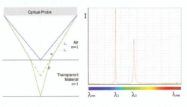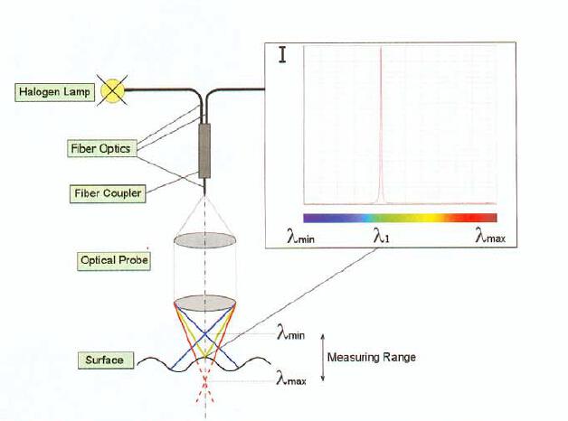 透鏡中心厚度檢測是透鏡生產中的一個重要環節,傳統的方法是采用接觸式測量法,這種檢測法精 度低、耗時長、容易劃傷透鏡并且無法實現實時在線測量。而另外一種非接觸式測量采用光學原理-色差共焦原理可以避免上面的問題,其檢測結果更為精確。可靠,由于整個系統沒有任何運動部件非接觸式測量,在檢測結果可靠性和穩定性方面,更為出色;同時由于采用了AvaSpec-ULS2048高速光譜儀,非常適合各種光學領域透鏡的中心厚度在線檢測。