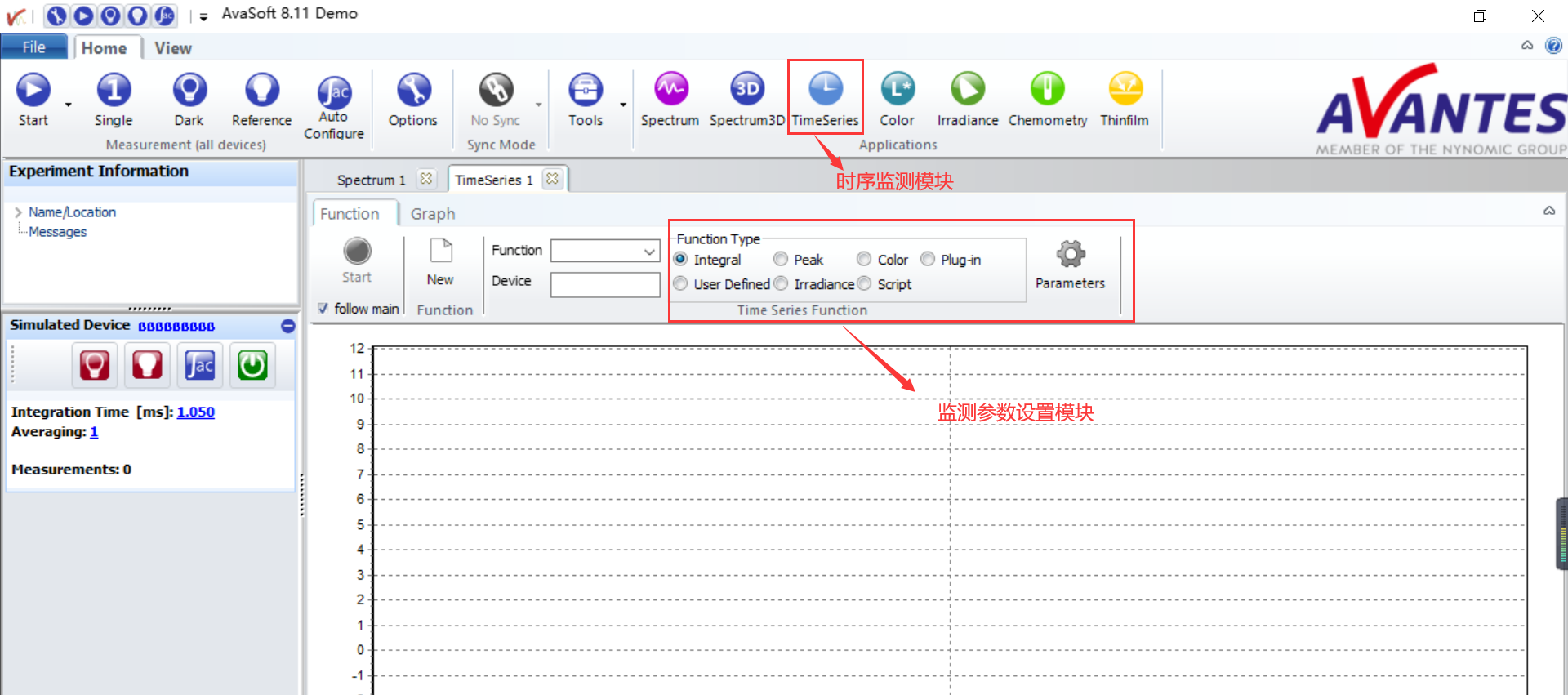 要監(jiān)測(cè)激光波長(zhǎng)隨時(shí)間的變化,只需要在軟件中打開(kāi) TimeSeries模塊,設(shè)置希望監(jiān)測(cè)的參,就可以看到激光波長(zhǎng),峰值,強(qiáng)度等設(shè)置參數(shù)隨時(shí)間變化的曲線了。軟件還能夠允許您多窗口同步工作,同時(shí)監(jiān)測(cè)多個(gè)參數(shù)隨時(shí)間的變化。