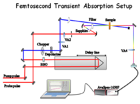 當一個分子吸收一個光子時,它將能量賦予該分子,使其暫時從基態激發到更高的電子能級或振動能級。由于能量守恒定律,只有當光子能量正好等于基態和激發態的差時,光子才能被吸收,且分子的數量和被吸收光子的數量有直接的關系,進而可直接確定分子的密度。因此,吸收是常用的光譜技術之一,特別是在濃度測量方面。由吸收引起的激發態壽命大多數都非常短暫,通常為飛秒或皮秒量級,但亞穩定激發態除外。基于這一事實,1950年,喬治·波特和羅納德·諾里什在劍橋大學時意識到他們可以使用閃光燈通過一種稱為閃光光解的方法來研究分子間的能量轉換[1]。直到超快鎖模激光器的發明,科學家們才得以充分利用波特和諾里什的貢獻,他們兩人因為這一發現獲得了1967年的諾貝爾化學獎。今天,超快激光器已經取代了閃光燈成為這些類型的實驗選擇的激發光源,這種技術更常被稱為瞬態吸收光譜法(TAS)。