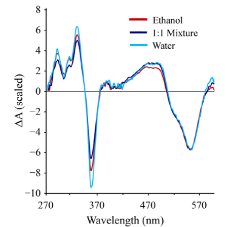 另外一個有意思的應用是密歇根大學(the University of Michigan)發表的關于氰鈷胺激發態在生物系統中的作用[3]。如圖6所示,他們使用Avantes的光譜儀測試不同溶劑對電子躍遷的影響。研究小組使用這些實驗數據驗證了他們研發的復雜量子力學模型的作用,并為進一步研究可以用作作抗維生素、光活性藥物傳遞劑和原位產生烴基自由基的鈷胺素輔酶因子奠定了基礎。