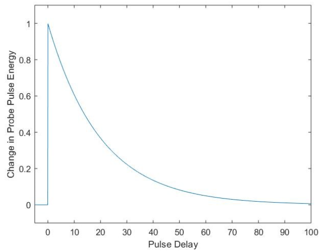 使用超快激光進行瞬態吸收光譜測試有許多不同的方法,基本上依據泵浦探針。該方法需要兩束激光同時激發分析物并測量吸光度。首先,高強度的泵浦激光激發樣品中的部分分子到更高的能級,從而改變了分子的居數差,降低了躍遷的吸收系數。然后,通過低強度的探針激光通測量樣品吸收。通過計算有無泵浦激光時探針激光的吸收差值,就可以確定吸收的變化。然后根據泵浦脈沖與探針脈沖的不同延遲時間系統重復此過程,測量發射探針脈沖能量的變化,如圖2所示。從這些數據,我們現在可以建立能級躍遷動力學的圖像,并確定自發壽命和其他瞬態效應。