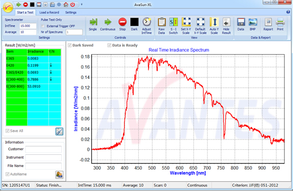 此外,您還可以根據(jù)特定的測試需求指定需要測試的光譜輻照度和累計(jì)輻照度