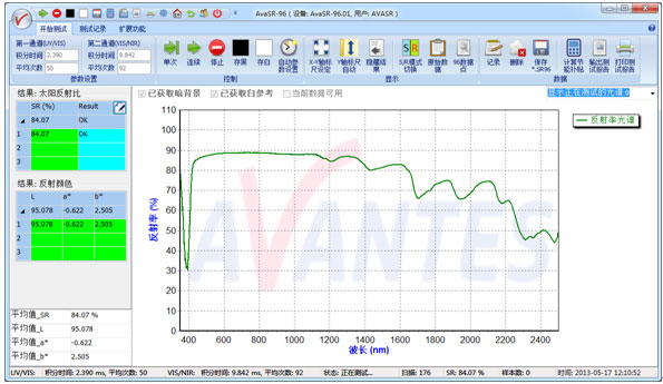 建筑領域是我國社會耗能大戶,能源危機明顯加劇,國家對建筑節(jié)能領域非常重視,太陽反射比是建筑反射隔熱涂料評價中的重要參數(shù)指標,也關系到建筑物的節(jié)能效果,因此對于建筑熱反射隔熱涂料的反射隔熱機理的研究顯得非常重要。本文以荷蘭Avantes公司的AvaSR-96便攜式太陽光譜反射儀為例,介紹在建筑反射隔熱涂料太陽反射比檢測中的應用。